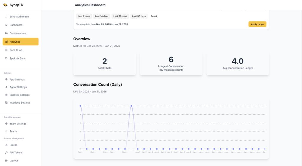 Karo carefully summarises the conversation, provides a reflection on if the query was resolved or not, and the overall topic. This summary consolidates the whole chat down to an overarching subject i.e accessibility, availability, refunds etc. As well as a summary, Karo implants other helpful metrics you would expect like time and date of the conversation.